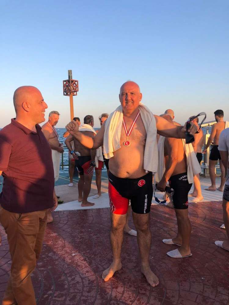 Yüzme yarışına İstanbul’dan katılan 30 kişilik Zeytinburnu Belediyesi Masterlar yüzme ekibi, 1500 metrelik parkuru başarıyla tamamladı.
