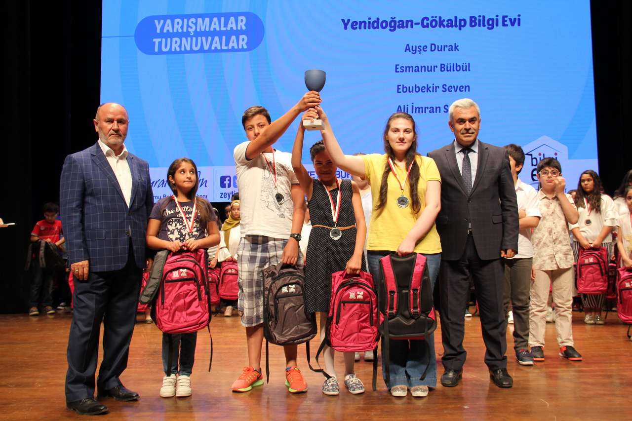 Zeytinburnu Belediyesi Başkan Yardımcısı Erdem Zekeriya İskenderoğlu, Kültür ve Sosyal İşler Müdürü Veli Koç, İlçe Milli Eğitim Müdürü Ali Yeşilyurt, İlçe Milli Eğitim Şube Müdürü Ali Akıllı, İlçe Müftüsü İsmail Gökmen ve Bilgi Evleri Koordinatörü Necmettin Işık’ın katılımıyla gerçekleşen coşkulu törende, üyelerin gayretli çalışmaları verilen ödüllerle onurlandırıldı. Tören boyunca Bilgi Evi üyeleri muhteşem bir performans sergiledi. Yaz döneminde 10 farklı branşta açılan 29 kulüp ve 23 atölye çalışmasında birer üye ödüllendirildi. Bilgi Evleri arasında kıyasıya bir mücadelenin yaşandığı turnuva sonuçları da şu şekilde oldu: