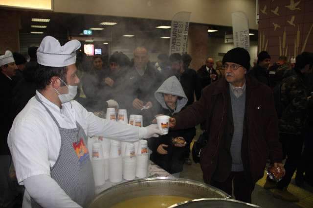 Marmaray yolcularına dumanı üstünde tüten sıcak çorba ikram edildi. Zeytinburnu Belediyesi, soğuk kış gününde sabahın erken saatlerinde işe ve okula gitmek için yola çıkan vatandaşlara dumanı üstünde tüten sıcak çorba ikram etti. Sabah saatlerinde Marmaray Kazlıçeşme durağının önünde kurulan stantlarda 3 bin kişiye sıcak çorba ve ekmek ikram edildi.