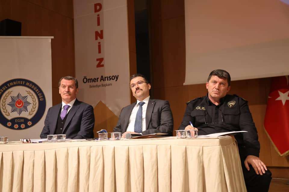 Başkan Ömer Arısoy konuşmasını şöyle sürdürdü. Değerli Kaymakamım, İlçe emniyet müdürümüz ve huzur toplantısı memnuniyetle ifade etmek isterim ki daha önceki kaymakamlara, ilçe emniyet müdürlerimizle olduğu gibi yeni Kaymakamımız yeni, Emniyet Müdürümüzle de olduğu gibi çok iyi bir iş birliği ve koordinasyon halindeyiz son zamanlarda süpürme hareketi dolayısıyla hepiniz şahitlik ediyorsunuz bu yapılan çalışmalara ama bilindiği gibi her daim uyanık olmak gerektiren sürekli mücadele etmek gerektiren bu toplantının bir maksatı olan hep birlikte beraber hareket etmeyi gerektiren husustur. İnşallah azimle kararlıkla başta İçişler bakanımız olmak üzere, Valimiz, Kaymakamız, İlçe Emniyet müdürümüzle her geçen gün Zeytinburnu’nun huzurunu, güvenliğini sürdürmek konusunda devam edeceğiz hepinizi saygıyla selamlıyorum dedi.